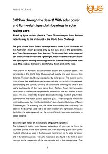 3,022km through the desert! With solar power and lightweight igus plain bearings in solar racing cars