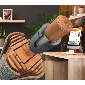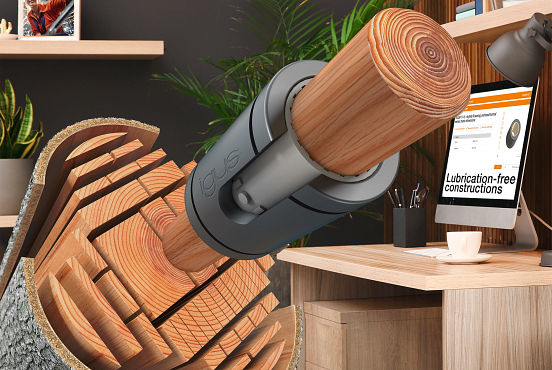 Wood and plastic? Is that a good combination? The motion plastics specialist igus has researched the idea in a recent design study and tested the friction and wear behaviour of its plastic linear bearings on a wide variety of wood, and the result is impressive. The drylin econ J4 plain bearing has demonstrated its exceptional compatibility with various kinds of wood, opening new possibilities for furniture makers and design engineers when choosing materials.