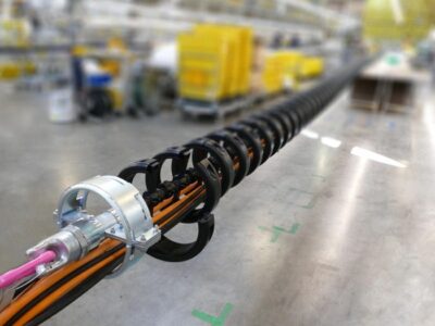 It guides cables safely at a defined bend radius and even withstands shocks and impacts: the e-loop. The energy chain system is specifically designed for hanging applications, such as in deep drilling rigs and is already replacing service loops worldwide. In order to offer users a complete ready-to-connect system from a single source that operates safely even in extreme application scenarios, such as in explosion zones, igus now offers its energy chains with special connectors and cables as tested readychains.