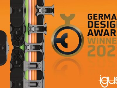 The E4Q energy chain series was developed by igus to achieve the best possible solution for unsupported and long travels. In the process, shapes inspired by nature ensure very low weight, while a unique tool-free opening concept reduces installation time by 40 per cent. The E4Q has now received the renowned German Design Award for this pioneering design.