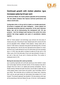Continued growth with motion plastics: igus increases sales by 8.5 per cent