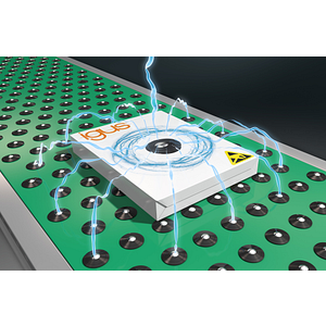 Users rely on ball tables for transducers in roller conveyors and for the transport of sensitive goods. Here igus polymer ball transfer units are used, because they can even move loads up to 500N smoothly and in all directions without any lubricant. To protect both conveyed goods and people from uncontrolled static electricity discharge, igus has now developed the tribo-polymer xirodur F182 for its ball transfer units. The new material is extremely durable and has proved its electrostatic conductivity in tests.