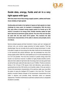 Guiding data and media in the tightest of spaces at high speeds is a major challenge for many users, for example in intralogistics. With the micro flizz, igus offers a compact energy supply system for travels up to 100 metres. It consists of an energy chain, flexible chainflex cables for tight bend radii and an aluminium guide channel. The micro flizz can now also be used with the new smart CF.D system. This monitors the data transmission characteristics of the cable in advance and promptly warns of a failure.