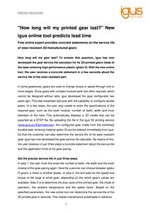 “How long will my printed gear last?” New igus online tool predicts lead time