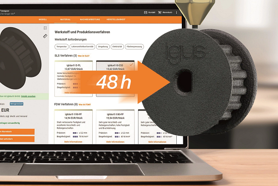 igus reduces delivery time with the 3D-printing service and makes online ordering particularly easy