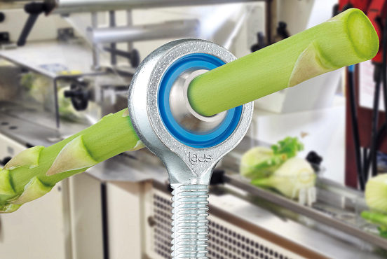 Rod ends are an indispensable part of machine and plant engineering for the food industry. They are used everywhere from filling plants to meat-processing machines and packaging systems, where they transmit dynamic forces to pivoting, tilting and rotating movements. In the process, the heads must be relubricated to guarantee low-friction movement between the slide ring and the spherical ball. A job that is not only time-consuming, but also increases the risk of contamination as dirt and dust easily form sticky coatings and solid lumps. “To ease the burden on food-processing plants while improving hygiene in their moving applications, we have expanded our range of igubal rod end bearings”, explains igus Product Manager Thomas Preißner. “The new plastic-metal hybrid consists of a steel housing and spherical ball, and an inner ring made of the high-performance plastic iglidur A160, which meets the requirements of both the FDA and EU 10/2011.”