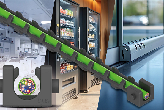 Whether in food-vending machines, laboratory equipment or electric doors: whenever space is at a premium, designers often dispense with guides for individual moving cables – and thus risk cable damage and unnecessary maintenance costs. A new, one-piece, injection-moulded and particularly compact energy chain made of high-performance plastic from igus is designed to put things right. As this product is currently still a design study, the Cologne-based motion plastics specialist is now looking for interested companies that would like to use the energy supply systems in pilot projects and develop them further to series production.