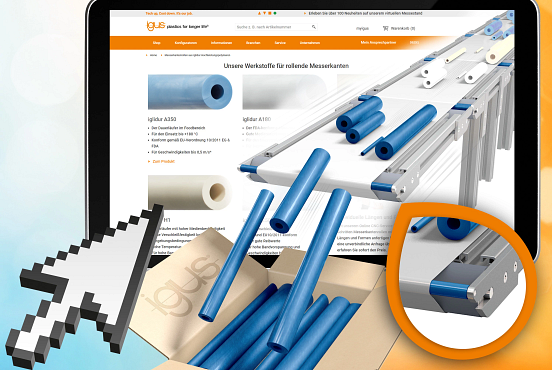 So that users can get their wear-resistant knife edge roller even faster, igus has expanded its online shop to include the range of iglidur rollers made from high-performance polymers. Included in the new range are knife edge rollers made of the blue material iglidur A250. The new tribo-polymer is particularly characterised by its wear resistance at high belt speeds and fulfils the requirements of FDA and EU conformity at the same time.