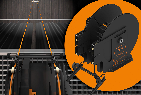 Sound engineers in theatres, opera houses and television studios are often under enormous time and expectation pressure. The e-spool microphone from igus provides help. With the new electrically powered microphone reeler, microphone cables of up to 30m can be automatically guided from the ceiling at the touch of a button. A trick in the design optimises transmission quality.