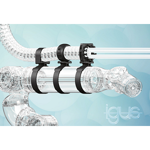 When people and machines stand shoulder to shoulder in production, safety at work is an important issue. Therefore, igus has now developed a new clamp for energy chains and protective hoses on cobots. The Lean Robotics retaining fixture produced by injection moulding, has a uniform size which makes it very cost-effective. The retaining fixture can be installed in seconds with a Velcro strip. Available in three options, the new clamp allows the universal safe guidance of cables for data and energy.