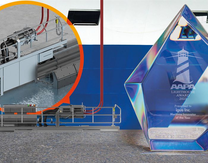 With its Mobile Shore Power Outlet (iMSPO), igus has developed a mobile shore power system for ports that can be moved flexibly depending on the position of the ships at the berth. The system allows ships to shut down their diesel engines in ports, switch to more environmentally friendly shore power and thus significantly reduce their CO2 emissions. For its central role in promoting sustainable and flexible port operations, igus has now been honoured as “Maritime Innovator of the Year”. The award was presented during the conference of the American Association of Port Authorities (AAPA) in Quebec, Canada.