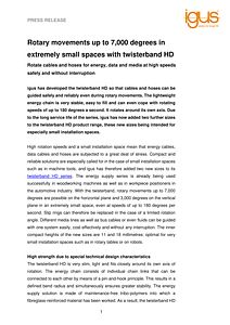 Rotary movements up to 7,000 degrees in extremely small spaces with twisterband HD