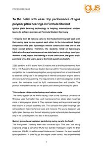 To the finish with ease: top performance of igus polymer plain bearings in Formula Student