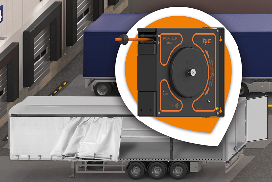 With the cable reel, igus offers a robust solution for the power supply in lorry trailers – without slip ring, space-saving and for universal use
