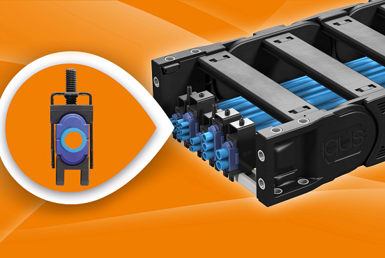 Too tight and it breaks off – an age-old saying that applies not only to screws. The same applies to clamps. These clamps relieve the strain on cables and pneumatic hoses in the energy chains of machines and systems during movement and hold them in position. However, if technicians over tighten the clamps, the clamps press into the jacket surfaces and crush them, causing permanent cross-sectional changes. This can lead to uneven compressed air flows in pneumatic hoses and consequently to malfunctions. To avoid this, igus has expanded the CFX series with a new clamp model that does not compress the cables.